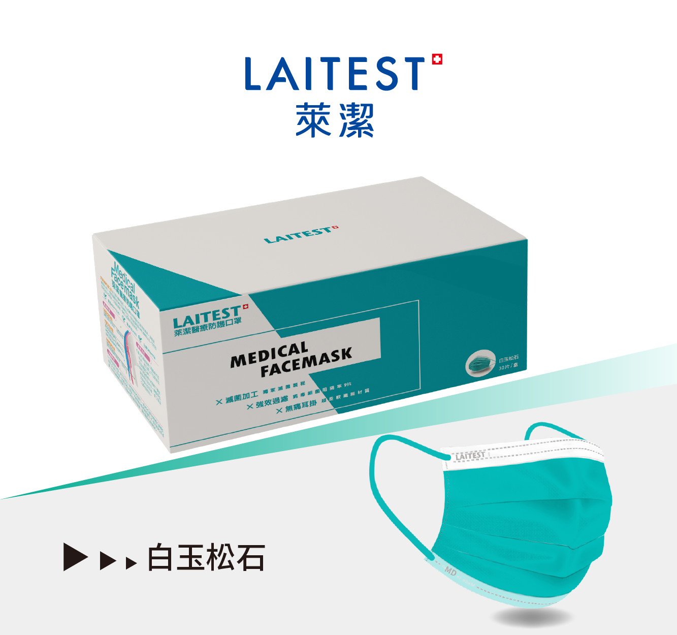 萊潔 醫療防護口罩 (白玉松石) | 成人用